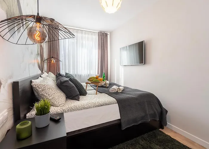 - ❓Welke populaire bezienswaardigheden liggen in de buurt van dit appartement?Gasten kunnen overwegen een bezoek te brengen aan het hoog gewaardeerde Arena Łódź, gelegen op 1 km afstand van dit appartement. Andere opmerkelijke bezienswaardigheden zijn onder meer het City of Łódź History Museum (4 km) en de Hortus botanicus (1,1 km).